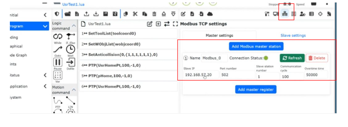 Once the registers are configured, you can begin testing how the welding machine responds to different values.