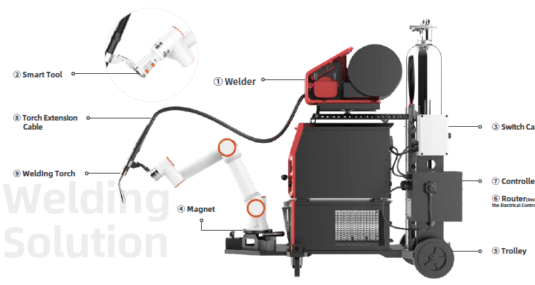 In this configuration, the FAIRINO cobot acts as the master node, directly commanding the welding equipment.